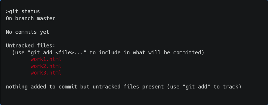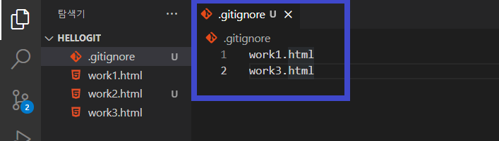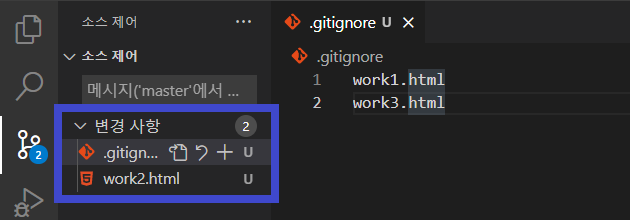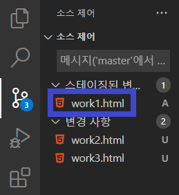 변경 사항에 work1.html 과 work3.html 이 없는 것을 볼 수 있습니다.