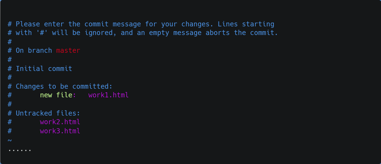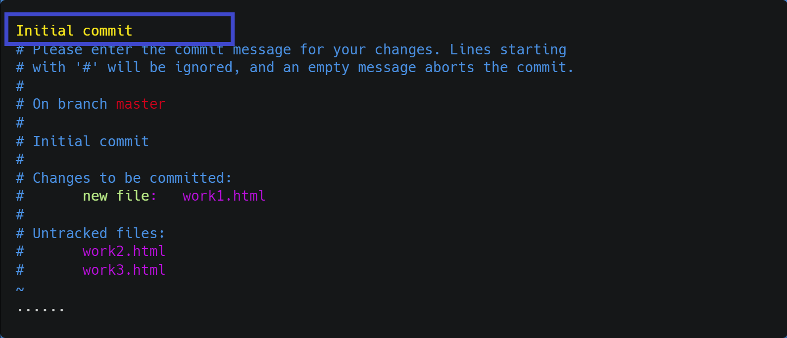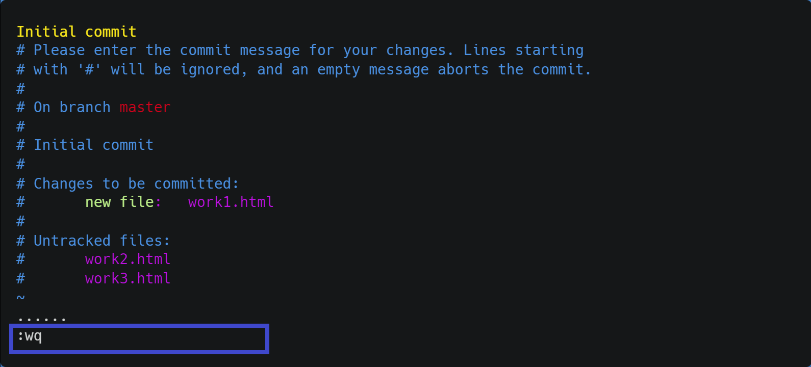 그리고 :wq 를 입력한 후 Enter 키를 누르면 커밋이 완료됩니다.